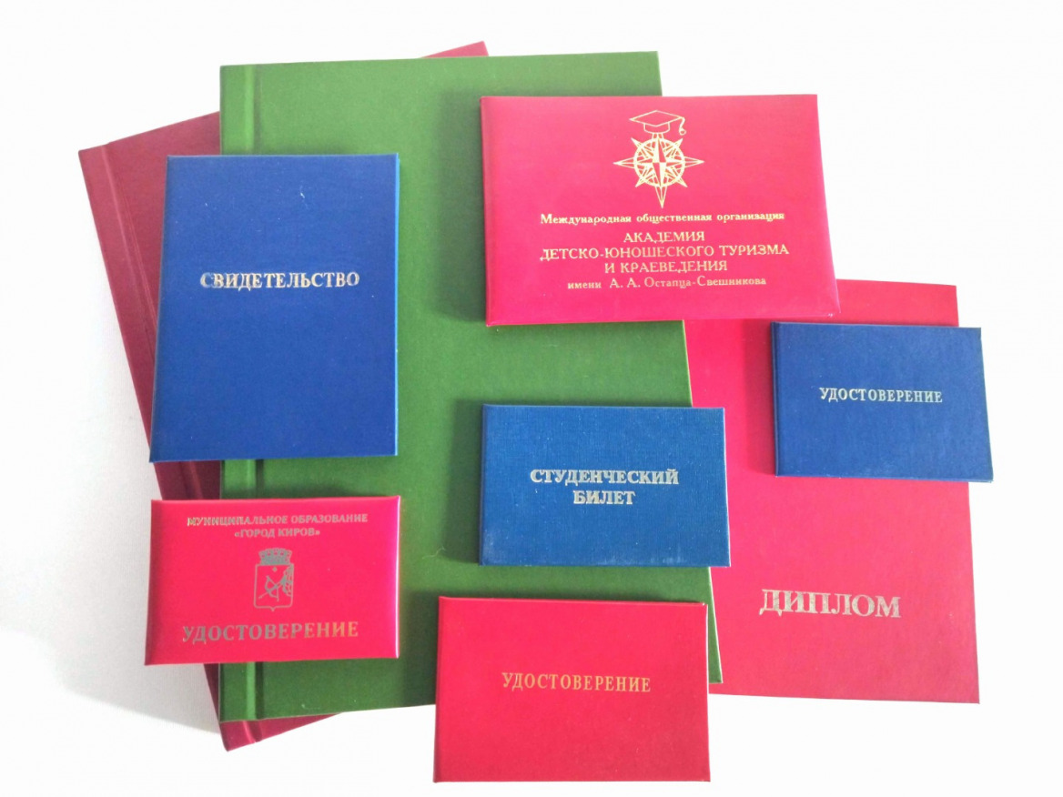 Изготовление переплета удостоверений, свидетельств, студенческих билетов, зачетных книжек, дипломов кандидатов наук, доцента, пропусков различных форматов.